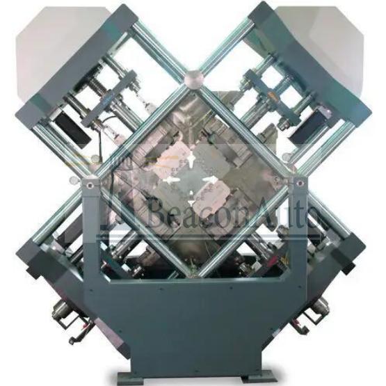 結(jié)晶聚合物十字形試樣雙向拉伸試驗(yàn)機(jī)實(shí)用新型屬于試驗(yàn)設(shè)備技術(shù)領(lǐng)域,特別涉及一種十字雙拉試驗(yàn)機(jī)。傳統(tǒng)的材料試驗(yàn)機(jī)只能測(cè)試單方向的拉伸強(qiáng)度,但是材料的應(yīng)用場(chǎng)景更多的是多向拉伸狀態(tài),因此以前的測(cè)試方法是分別做兩個(gè)方向的拉伸載荷測(cè)試然后再綜合計(jì)算數(shù)據(jù)。但是材料在實(shí)際多向形變的過(guò)程中各個(gè)方向的應(yīng)力是相互影響的:x向施加了應(yīng)力后,可能會(huì)讓y向的失效應(yīng)力比單獨(dú)施加y向的失效稍大,最多的應(yīng)用在汽車(chē)高強(qiáng)鋼板、鋁合金板、碳纖維面板等。