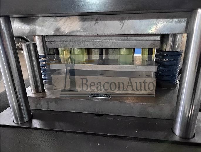 5、放好料后,按住“沖裁”按鈕,能聽到料被剪斷的聲音,聽到該聲音即可松開“沖裁”按鈕。
